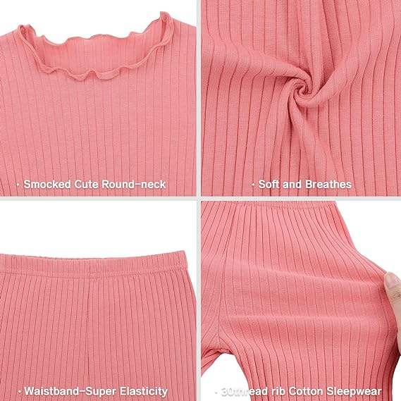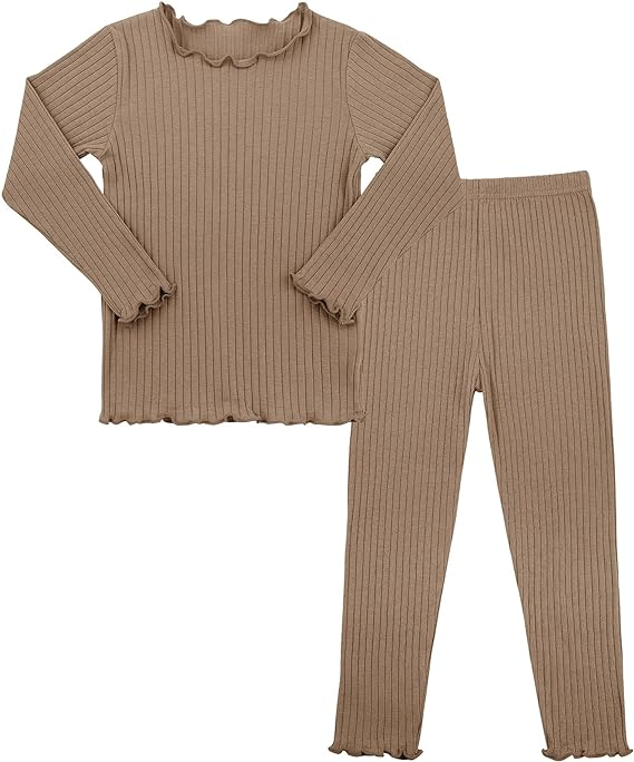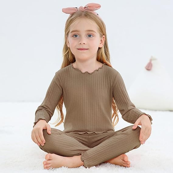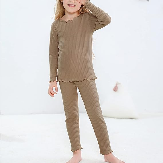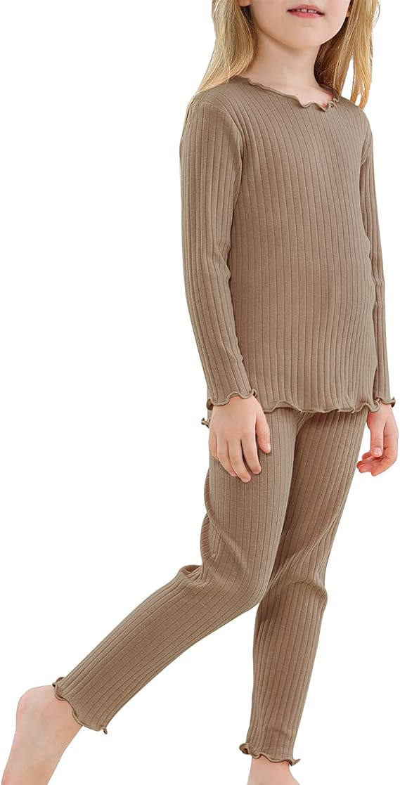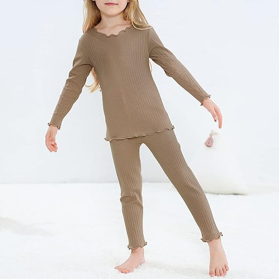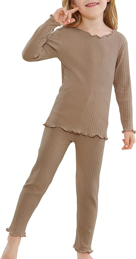 - ⇒ Design: Design: Ribbed Long Sleeve 2 pcs sets for girls- Simple design and several basic colors, match all winter girls boys clothes. The soft pajamas with good flexibility perfectly fits body curves, keeps cozy in winter.