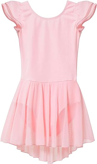 - Flutter ruffle sleeve ballet leotard with attached fairy glass yarn skirt for toddler girls