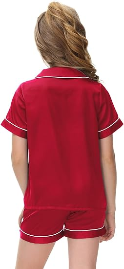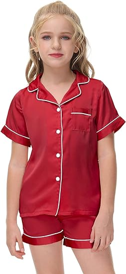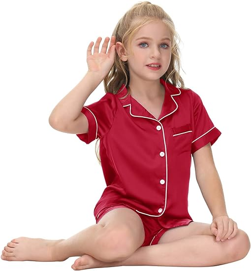 🌈Garment Care: Low temperature for machine wash is recommended, can use dryer, don’t bleach. These kids satin Pj sets are with sizes 4T-13 Y to choose from.If you like more relaxed and comfortable style, please choose a larger size.