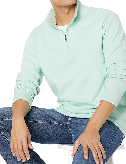 Mint green Men Lightweight French Mock Neck Sweatshirt