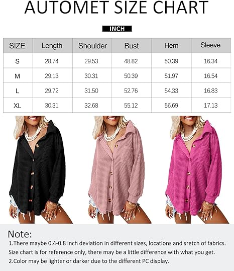 Match: You can wear this casual blouses as a single shirts,or pair this classic waffle knit shacket shirts with variety of tank tops, cami, bodysuit ,coat, jeans, denim shorts, jeggings, sneakers or boots to complete a fashionable and trendy look.